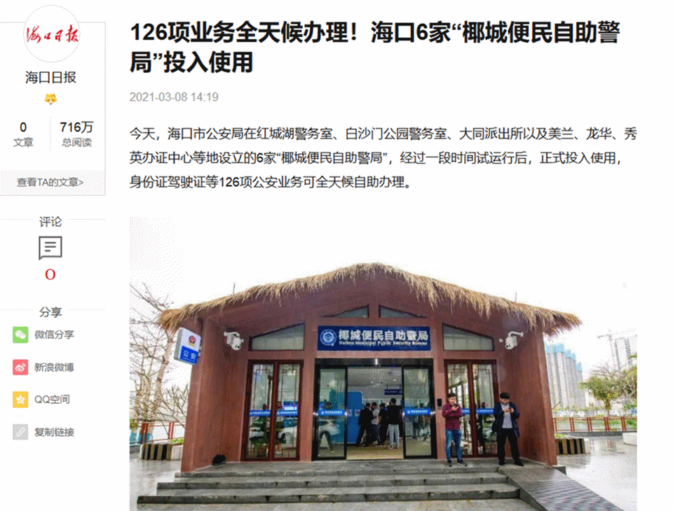 椰城便民自助警局上线后,短时间内就为市民办理了过万笔业务